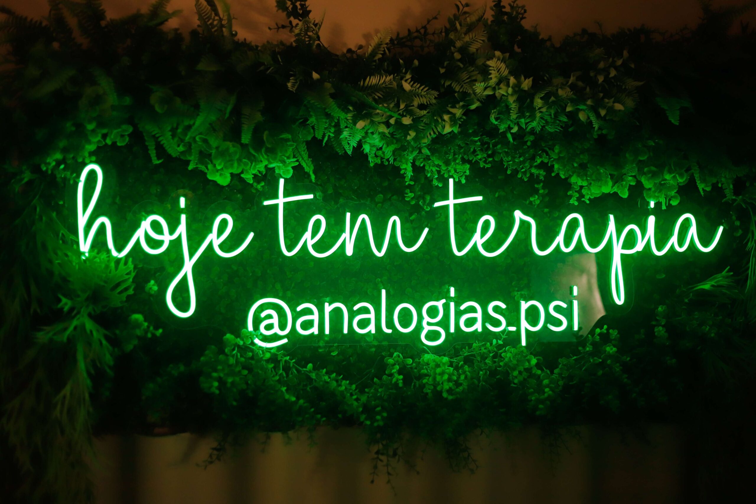 A sala de espera recebeu um letreiro em led com os dizeres “Hoje tem Terapia”, e espaço